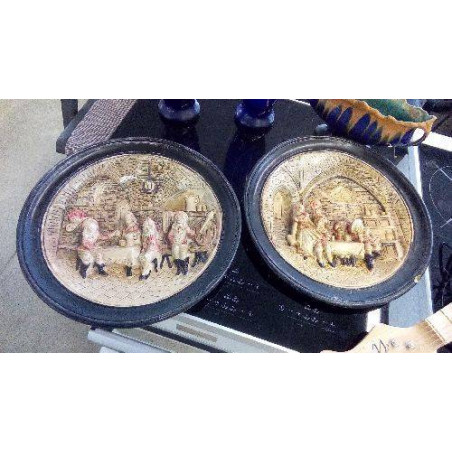 • PAIRE DE PLATS DÉCORATIFS TERRE CUITE