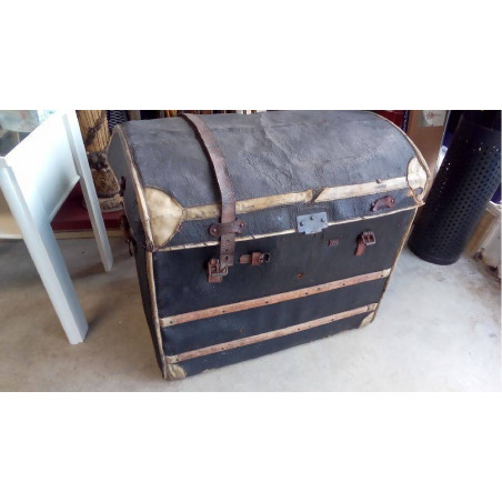 • MALLE DE FIACRE EN OSIER TOILÉ AVEC 2 PANIERS