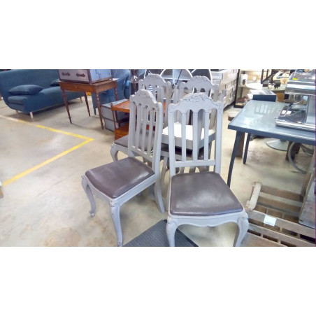ENSEMBLE DE 6 CHAISES PATINÉES GRISES